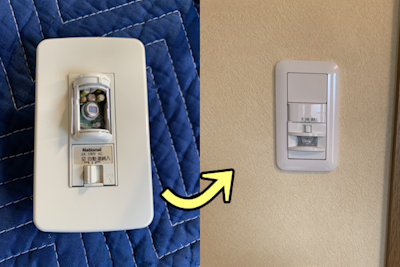人感センサ付きのスイッチに交換すると、照明が人を感知して自動でパッと点灯。両手が荷物でふさがっていても近づくだけでOKです!