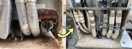 以前お使いいただいていたエコキュートのタンク下部が排水臭の影響で腐敗し、台に汚れが付着していましたが丁寧に掃除を行い綺麗になりました✨