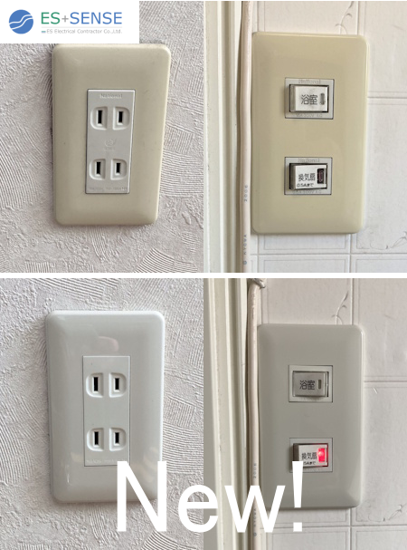 今回はぐらついているコンセント&接触不良でパイロットランプが点かない浴室スイッチを修理し、安全にご使用頂けるようになりました!