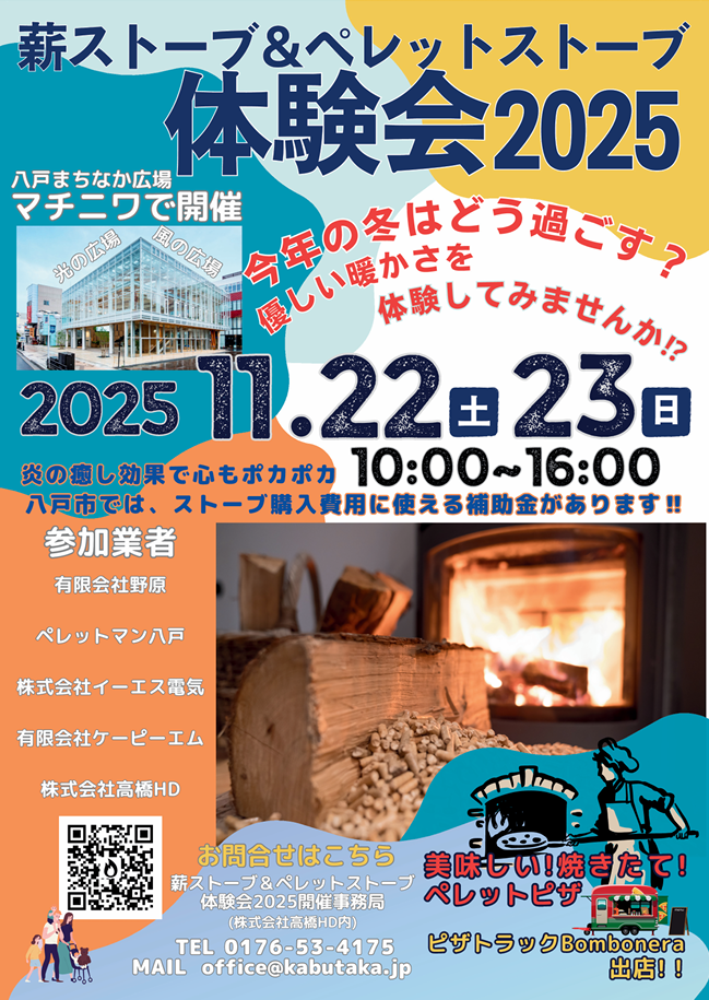 今年も八戸まちなか広場マチニワにて『薪ストーブ&ペレットストーブ体験会2025』が開催されることになりました!