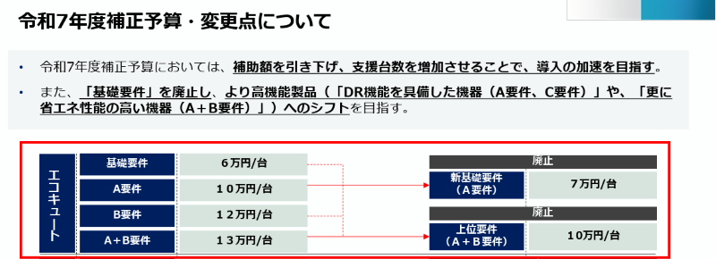 昨年度からの変更点として、インターネットに接続可能な機種で、昼間の再エネ電気を積極的に自家消費する機能を有することを要件化される予定です。